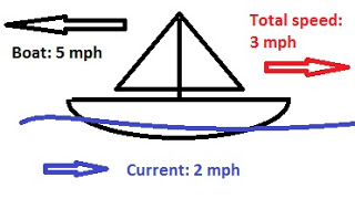 Now imagine you’re on a river whose current is about 2 mph. If you’re rowing upstream, your overall speed will be 3 mph.