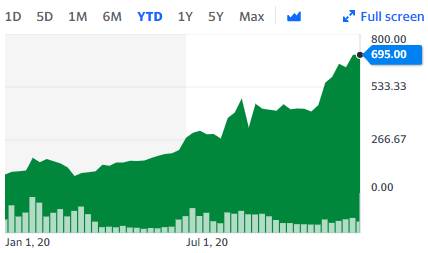 2020 has been a crazy year. I won’t go into all the weirdness that has been my life this year, but Tesla saw a meteoric rise in 2020 after five straight quarters of profitability and inclusion in the S&P 500. What that means is that every mutual fund that tracks the S&P 500 (meaning, they own all the stocks on the index) will be buying Tesla. That alone caused the stock to rise, as did people bidding up the price in anticipation.