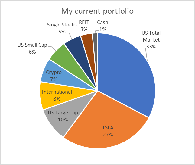 That’s not to say you can’t have a little excitement. At a certain level of net worth, it’s ok to risk a bit. When I reached $200,000, I put about 10% of my portfolio into several single stocks and riskier investments. I got very lucky with a couple of these, notably Tesla and Bitcoin, but most of my contributions have always been to index funds. And it has paid off:
